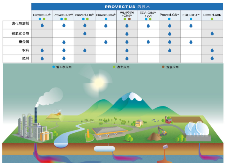 PROVECTUS ENVIRONMENTAL PRODUCTS, INC.作为一家土壤及地下水修复产业的生化科技厂商。我们专精于ISCR和ISCO整治技术,并致力于下一世代的科技与全球化发展。专利的修复技术提供客户更安全、有效及最佳成本的解决方法。